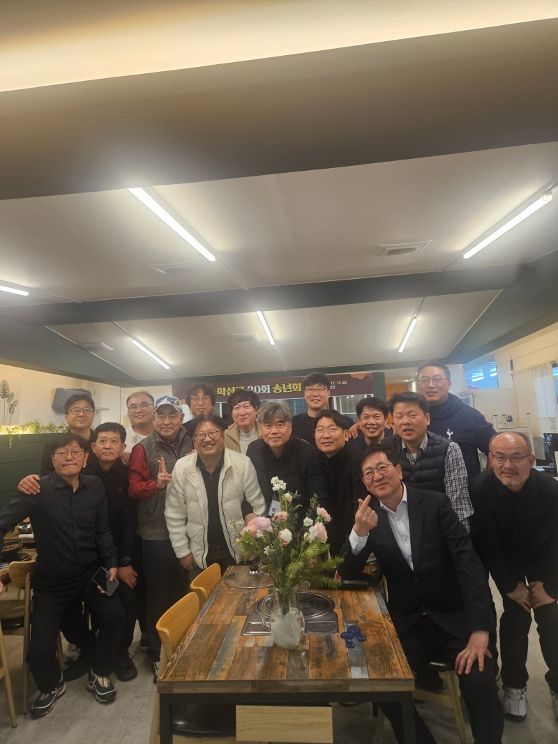 2025년 송년회 행사 사진9 페이지 정보 작성자 사무국 (1.♡.204.148) 작성일25-12-22 13:15 조회275회 댓글0건 관련링크 목록 본문 2025년 송년회 행사 12월 19일 - 20회 기수 송년회 총동문회 (참석) 2025년 : 17회 정현우 사무총장2026년 : 18회 박준혁 사무총장 댓글목록 등록된 댓글이 없습니다. 목록