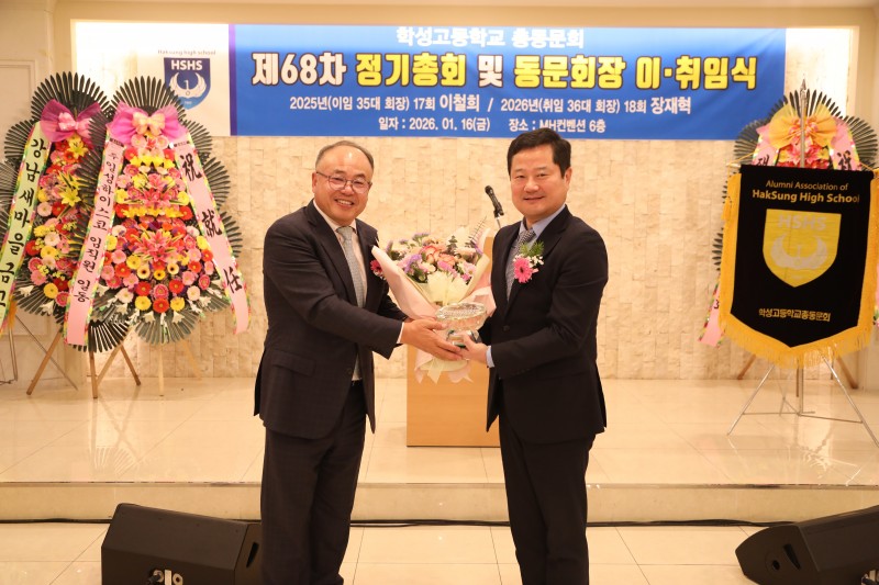 2026년 총회 및 회장 이.취임식 행사 사진 페이지 정보 작성자 사무국 (1.♡.204.148) 작성일26-01-21 15:02 조회203회 댓글0건 관련링크 목록 본문 2026년 제68차 정기 총회 및 회장 이.취임식2026.01.16(9회 이달우 동문님께서 촬영 해 주신 행사 사진 입니다) - 이임회장 : 17회 이철희 - 취임회장 : 18회 장재혁 댓글목록 등록된 댓글이 없습니다. 목록